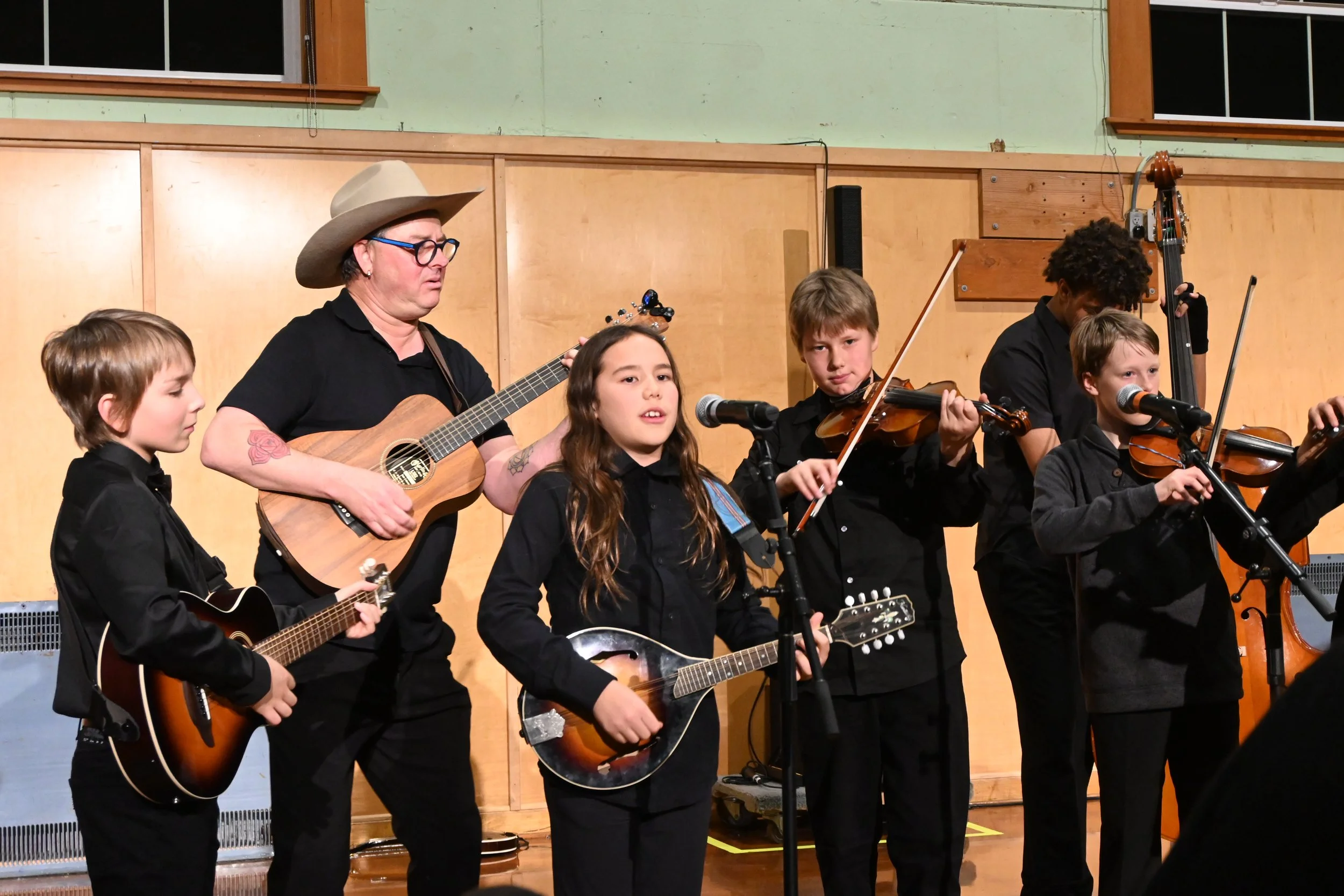 Middle school students learn to play bluegrass style music with our very own Mr. Redner, an accomplished Bluegrass musician.